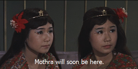 They end up luring Mothra to an airport tarmac by painting the symbol on a runway. She picks up the Shobijin, and they’re off. Roll credits. The moral of the story is, don’t do atomic testing on inhabited islands and run a freakshow with kidnapped natives, or Mothra will come fuck you up. You may be beyond the reach of the international courts, but you cannot hide from the vengeful goddess Mothra.