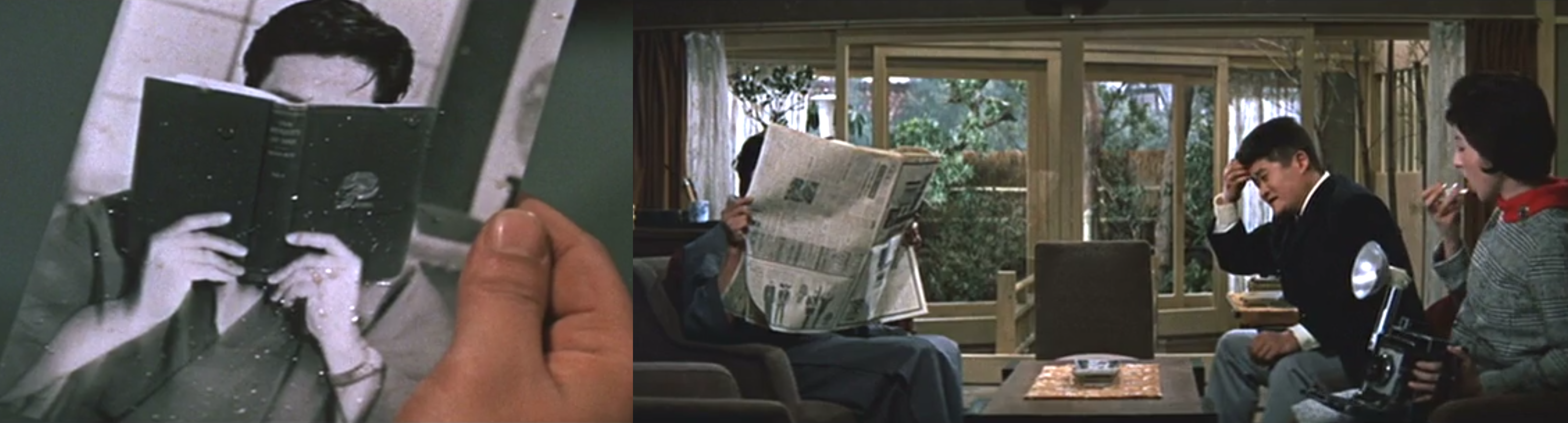 In what I’m sure is some of Frankie Sakai’s influence, the two decide to visit Dr. Shin’ichi Chūjō, an anthropologist played by Hiroshi Koizumi of Godzilla Raids Again. The exchange in the newsroom that cuts to Chūjō’s home is comic genius, a photo is shown of him behind a book. “What the heck is this?” the editor asks. “Great shot!” Fukuda responds, “He doesn’t like being photographed.” Smash cut to them trying to interview Chūjō who’s obscured be a newspaper. BRILLIANT.