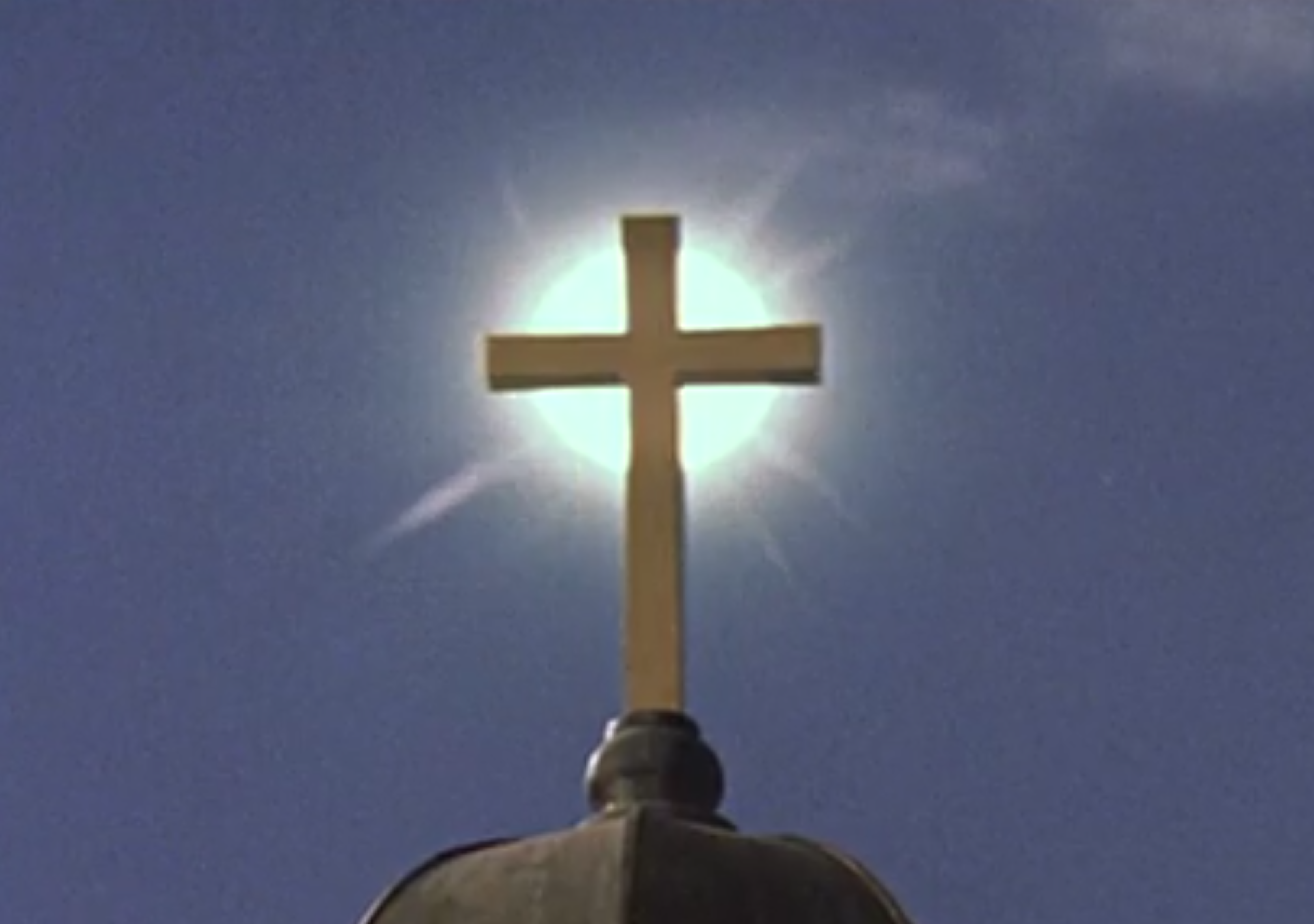 So, death and rebirth are going to be common Mothra themes in most movies moving forward, but in Mothra (1961) they are VERY explicit about the religious symbolism. Doc Chūjō realizes one of the symbols he found resembles a christian cross with the sun shining behind it and everyone prays…followed by another hilarious smash cut to Mothra barreling around through a barrage of rockets…just like Jesus did!
