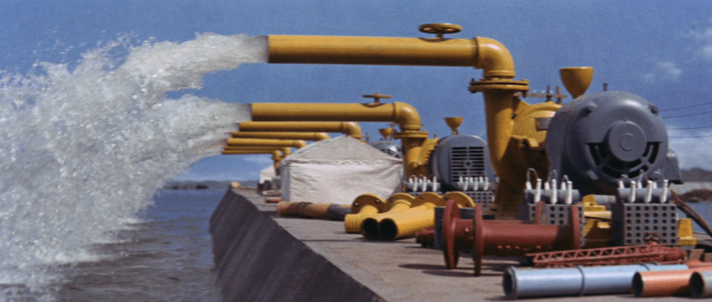 Japan’s economic engine in the 1960s stemmed from the Korean war a decade prior. In an economically depressed postwar nation, acting as a staging area for UN troops to fight the ubiquitous threat of communism kick-started a massive transformation across the country. With many industrial centers being destroyed in WWII, Japan was able to rebuild with the latest technology and politically invested in robust economic expansion. The nation saw agricultural, rural population move from 85% prewar, to 50% in 1945, to just 20% by the 60s. The country shifted focus towards production of high-quality consumer products and urban infrastructure. While this rising tide did indeed lift all ships, it wasn’t without flaws or social cost. Japan is unique in being one of the only collective capitalist nations, relying on tight-knit business relationships, companies owning shares in each other, creating cartels that control the supply chain from manufacture to distribution, and deeply embedded government partnerships. The cronyism and rampant greed are on full blast here in 1964’s Mothra vs. Godzilla.